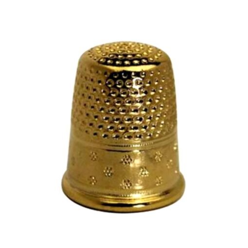 These beautiful gold plated steel thimbles are crafted for us in Normandy France. The top and half way down the side is dimpled to stop needles slipping while the bottom half of the thimble is decorated with small flowers or fleurets.