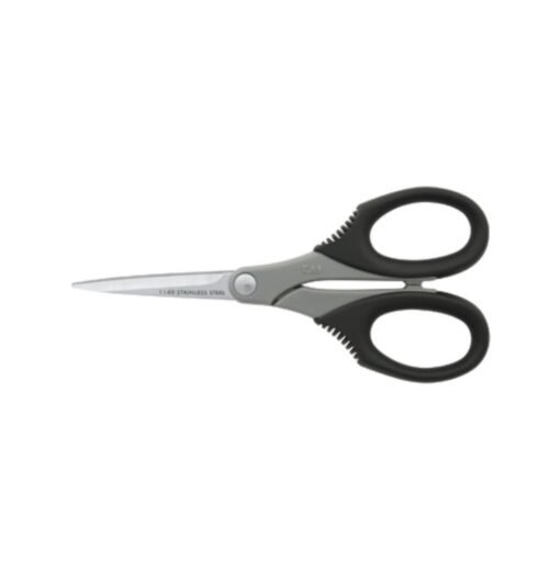 These little beauties are 14cm in total length. They have nice slim points to cut delicate thread but they have enough bulk in their blades to snip into fabric. Â Their blades are made from stainless steel and they have soft comfortable handles.