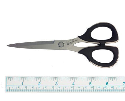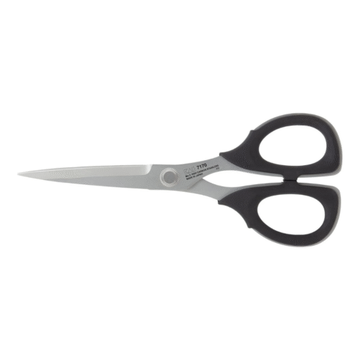 The Kai 7170 6 2/3″ Professional Series scissor is an all-around, powerful cutting tool.  The blade is made of a high-carbon stainless steel that ensures a sharp cut, all-the-way to the tip.  It also features handles made of “Elastomer”, a soft plastic, which are designed for better leverage and ease of handling while cutting.   Additionally, the 7170, like the 7150, is an ideal size for tasks such as general trimming, cut-work, or any task where larger shears would be too bulky, but cutting power is still desired and necessary.  The 7000 series scissors, including the 7170, are made of a high carbon, hardened stainless steel.  The addition of carbon allows for a steeper cutting angle, giving the scissor a sharper, finer edge.  The carbon also allows the finer edge to be more durable, which in-turn, extends the cutting life of these professional scissors.