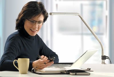 The elegant Slimline Table Lamp from Daylight™ will quickly become the most valued tool in your workspace. This fully adjustable, brushed chrome desk lamp is ergonomically perfect — you position it exactly where you want it for use above the hands and beneath eye level. The no heat, shadow-free Daylight™ LEDs are energy efficient and provide “full spectrum” light for perfect colour matching.